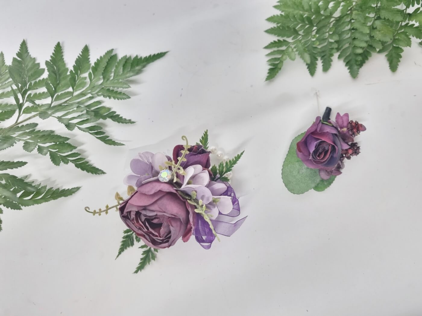 His & Her’s Silk || Wrist Corsage and Button Hole Purple
